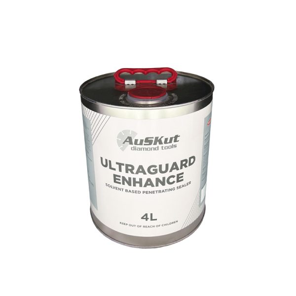 Auskut’s UltraGuard Enhance is a cost effective alcohol-based penetrating sealer. Penetrating sealers are non-enhancing meaning they are “invisible sealers” that protect the surface’s natural appearance. Commonly applied as the final essential step of mechanically polished concrete. Available in 4L or 20L.