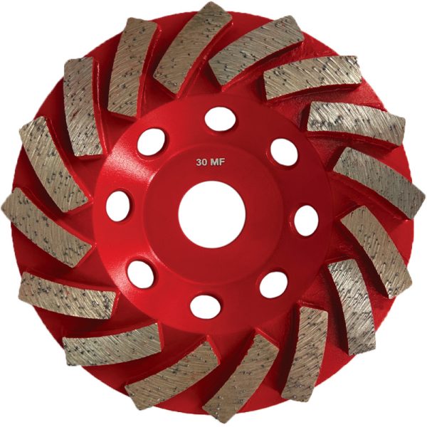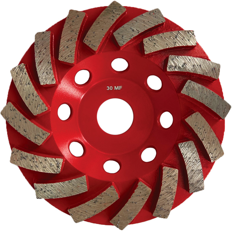 Our 5″ (125mm) turbo cup wheels are designed for very aggressive to fine concrete grinding. These wheels feature 5mm high diamond segments with various segment counts, grit options and bonds to suit your specific needs.