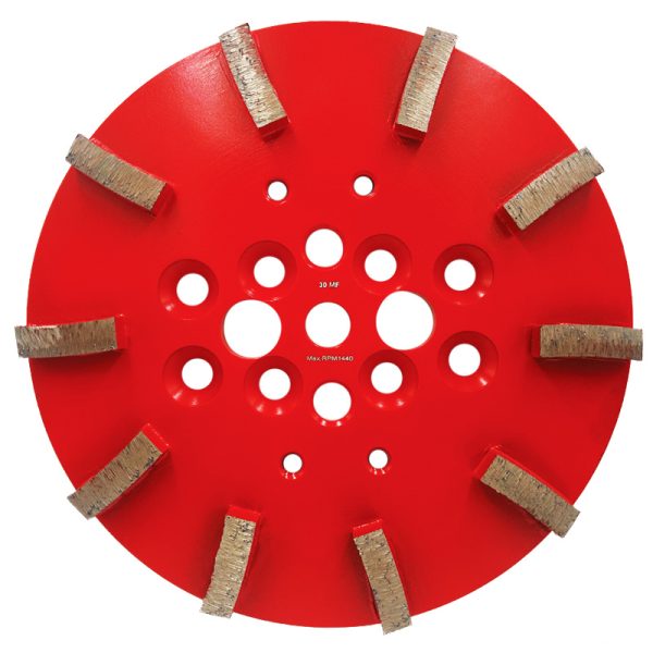 Our range of 10″ (250mm) premium quality diamond grinding plates to suit Crete Mower (and most popular Cub grinder models) provide options for maximum material removal through to general purpose surface preparation jobs. Available in 10mm high 30 grit segments, in a variety of configurations and bonds, tailored to meet your specific needs.
