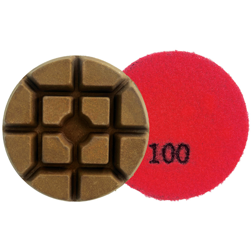 Our 3″ (80mm) x 10mmH solid resin diamond polishing pads with velcro backing are designed for use with heavy floor grinders and our velcro slide-on base plates. Available in various grit to suit your needs.