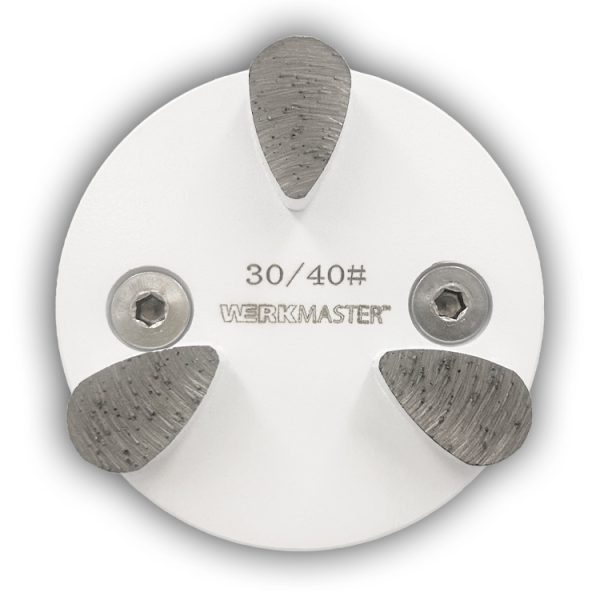 WerkMaster’s 3″ (76mm) teardrop metal bond tools are essential for concrete polishing, providing optimal surface preparation to achieve your desired level of exposure. These tools are available in 30/40 or 70/80 grits, with options for medium or soft bonds, ensuring versatility and precision in every project. Perfect for creating a smooth, consistent finish, they are a reliable choice for professional concrete polishing.