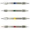 - Non-tarnishing nickel-plated brass pin vise holders for the hardness points
